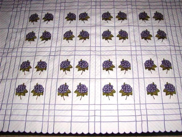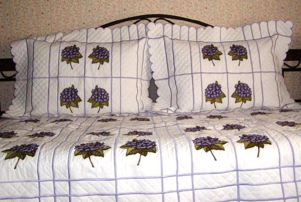 Hydrangeas. This quilt is 65" X 95" and it goes on the daybed twin with